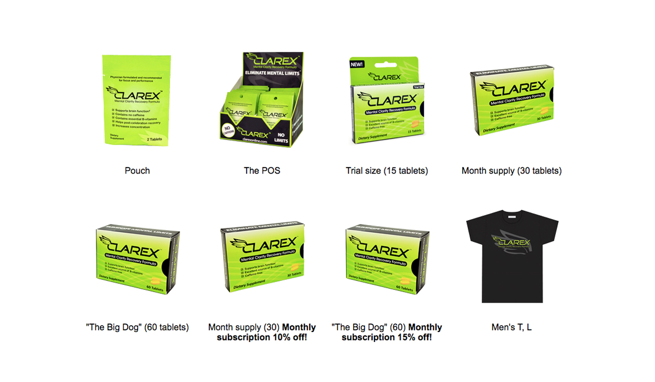 Sugar and caffeine free multivitamin supplement. Clarex is projected to audiences looking for a healthy alternative to caffeine and sugar-loaded products.
