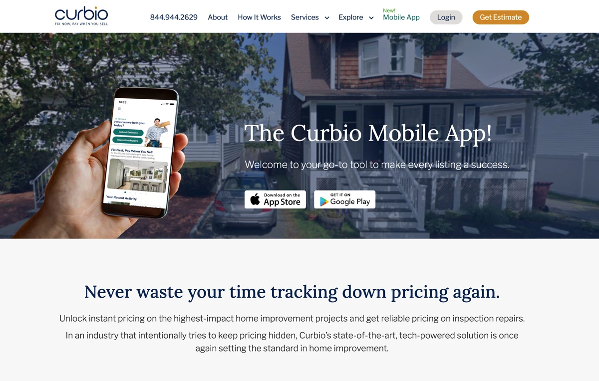 Highlight of key features of the Curbio app, which was introduced to simplify and expedite processes for real estate agents and homeowners, completely transforming financing, remodeling and selling experiences from tedious to at-fingertips.